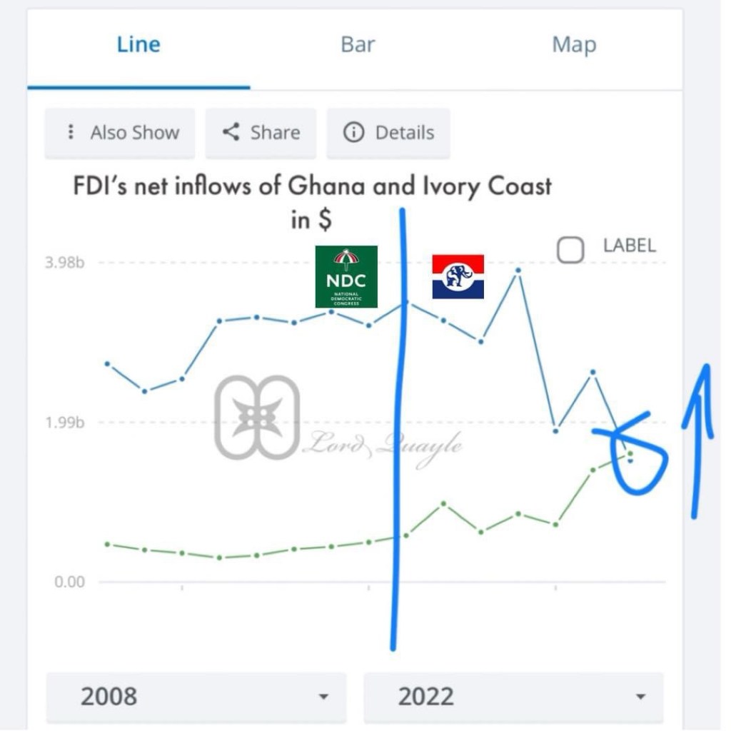 Ghana is regarded as a beacon of hope in West Africa, particularly in terms of foreign direct investment (FDI). From 2008 to 2016, the country experienced a remarkable surge in FDI, peaking at $3.5 billion in 2016 under the stewardship of the National Democratic Congress (NDC). However, since the New Patriotic Party (NPP) came to power, this positive trajectory has sharply declined, raising major concern about Ghana’s investment environment and economic prospects.